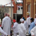 Nach der wie gewohnt sehr gut besuchten Narrenmesse versammelten sich die Narren zum großen Narrensprung. Auch wenn die Rekordmarke des Vorjahres (260 Narren) dieses Mal nicht ganz geknackt wurde, war die Beteiligung angesichts der Wetterverhältnisse absolut beachtlich: